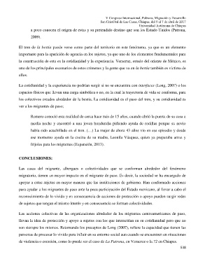 migratorio, tienen un mayor impacto en el migrante de paso. Es decir, la sociedad se ha encargado de