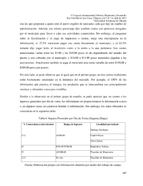 Tabla 6. Ingreso Promedio por Día de Venta (Segunda Etapa)