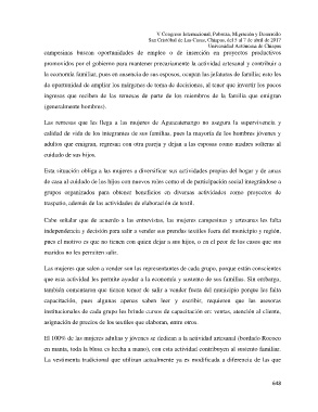 la economía familiar, pues en ausencia de sus esposos, ocupan las jefaturas de familia; esto les