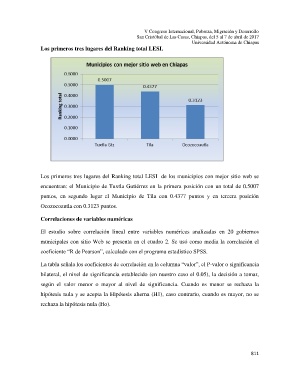 municipales con sitio Web se presenta en el cuadro 2. Se usó como media la correlación el